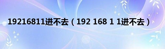 导读 大家好,麟非来为大家解答以上问题,19216811进不去,192 168 1 1进不去很多人还不知道,现在让我们一起来看看吧!比如公司用的ADSL拨号