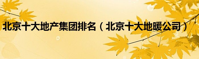 导读 大家好,精选小编来为大家解答以上的问题。北京十大地产集团排名,北京十大地暖公司很多人还不知道,现在让我们一起来看看吧!1、谁知道什