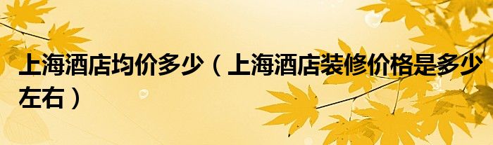 上海酒店均价多少(上海酒店装修价格是多少左右)