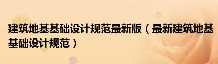 建筑地基基础设计规范最新版(最新建筑地基基础设计规范)