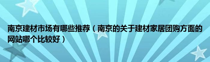 南京建材市场有哪些推荐(南京的关于建材家居团购方面的网站哪个比较好)