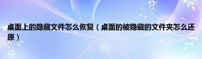 导读 大家好,小编慧慧来为大家解答以上的问题。桌面上的隐藏文件怎么恢复,桌面的被隐藏的文件夹怎么还原很多人还不知道,现在让我们一起来看看