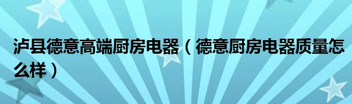 泸县德意高端厨房电器(德意厨房电器质量怎么样)