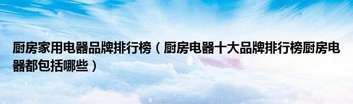 厨房家用电器品牌排行榜(厨房电器十大品牌排行榜厨房电器都包括哪些)
