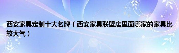 大家好,精选小编来为大家解答以上的问题。西安家具定制十大名牌,西安家具联盟店里面哪家的家具比较大气很多人还不知道,现在让我们一起来看看吧!
