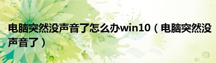 电脑突然没声音了怎么办win10(电脑突然没声音了)