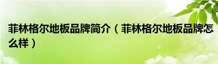 菲林格尔地板品牌简介(菲林格尔地板品牌怎么样)