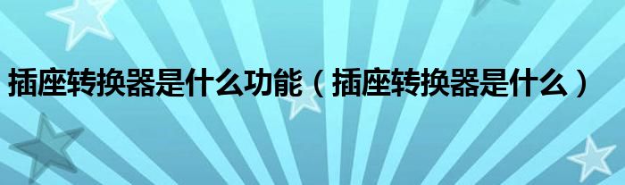 插座转换器主要是用来将一种形式的插座转换成别外一形式或多种形式的插座,以及手机充电、电动车等也是插座转换器的一类。插座转换器,也叫多功能转换插头,或者全球通转换插座等,转换器及一款产品适带多款插脚,可以适应很多国家,插座转换器不像变压器,是没有变压功能的,而且会有多种功能,就是那种插在插座上的单个插座,用来解决插头和插座不匹配的问题,等等诸如常见插座插欧款插头、两脚插头插三孔,规格很多,超市就有。