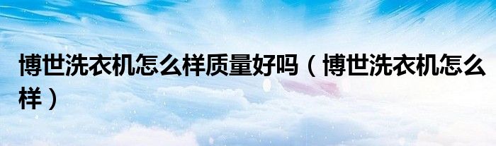 博世洗衣机怎么样质量好吗(博世洗衣机怎么样)