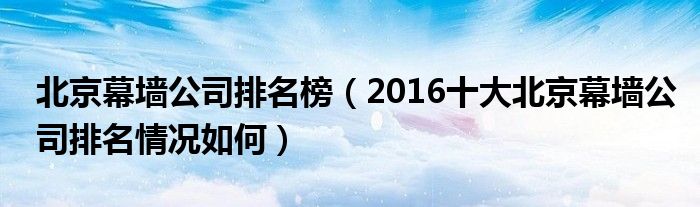 北京幕墙公司排名榜(2016十大北京幕墙公司排名情况如何)
