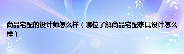 尚品宅配的设计师怎么样(哪位了解尚品宅配家具设计怎么样)