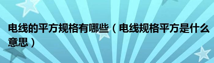 电线的平方规格有哪些(电线规格平方是什么意思)