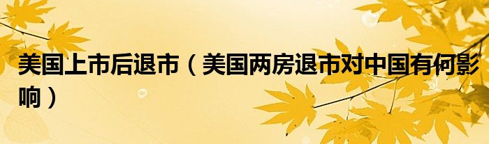 大家好,小编慧慧来为大家解答以上的问题。美国上市后退市,美国两房退市对中国有何影响很多人还不知道,现在让我们一起来看看吧!