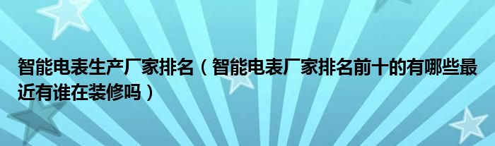 智能电表生产厂家排名(智能电表厂家排名前十的有哪些最近有谁在装修吗)