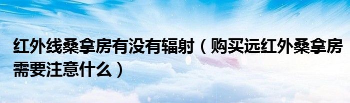 导读 大家好,小编慧慧来为大家解答以上的问题。红外线桑拿房有没有辐射,购买远红外桑拿房需要注意什么很多人还不知道,现在让我们一起来看看吧