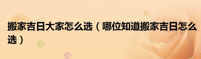 搬家吉日大家怎么选(哪位知道搬家吉日怎么选)