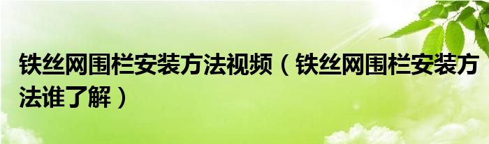 导读 大家好,小编慧慧来为大家解答以上的问题。铁丝网围栏安装方法视频,铁丝网围栏安装方法谁了解很多人还不知道,现在让我们一起来看看吧!1