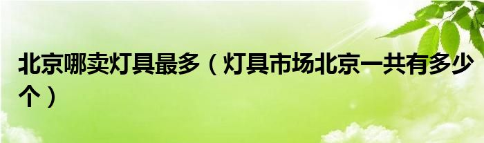 导读 大家好,精选小编来为大家解答以上的问题。北京哪卖灯具最多,灯具市场北京一共有多少个很多人还不知道,现在让我们一起来看看吧!1、北京
