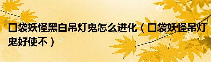 口袋妖怪黑白吊灯鬼怎么进化(口袋妖怪吊灯鬼好使不)