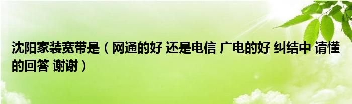 导读 大家好,小编慧慧来为大家解答以上的问题。沈阳家装宽带是,网通的好 还是电信 广电的好 纠结中 请懂的回答 谢谢很多人还不知道,现在