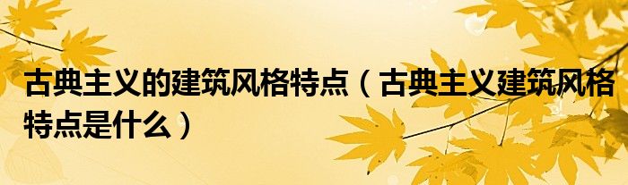 古典主义的建筑风格特点(古典主义建筑风格特点是什么)