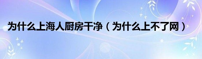 为什么上海人厨房干净(为什么上不了网)