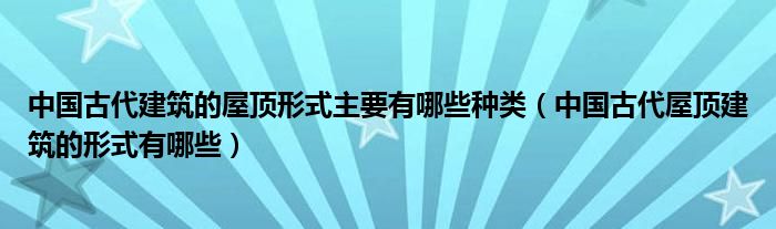 中国古代建筑的屋顶形式主要有哪些种类(中国古代屋顶建筑的形式有哪些)