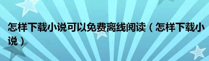 怎样下载小说可以免费离线阅读(怎样下载小说)
