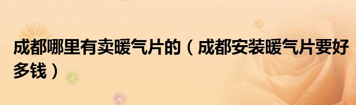 导读 大家好,精选小编来为大家解答以上的问题。成都哪里有卖暖气片的,成都安装暖气片要好多钱很多人还不知道,现在让我们一起来看看吧!1、楼