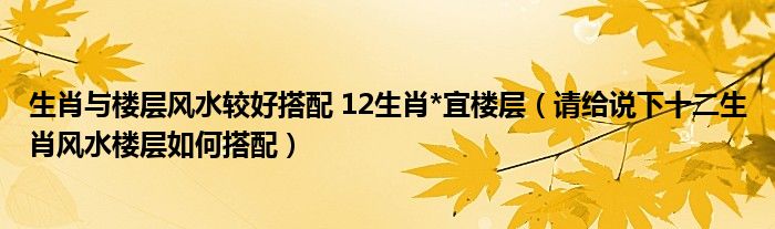 生肖与楼层风水较好搭配 12生肖*宜楼层(请给说下十二生肖风水楼层如何搭配)