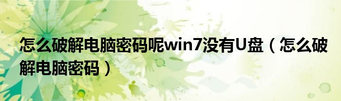怎么破解电脑密码呢win7没有U盘(怎么破解电脑密码)
