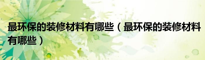 最环保的装修材料有哪些(最环保的装修材料有哪些)