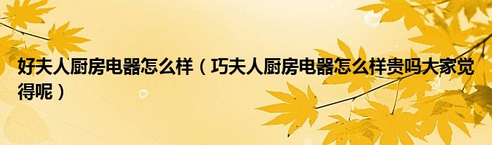 好夫人厨房电器怎么样(巧夫人厨房电器怎么样贵吗大家觉得呢)