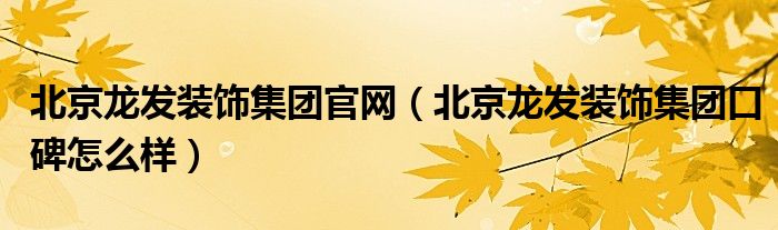 北京龙发装饰集团官网(北京龙发装饰集团口碑怎么样)