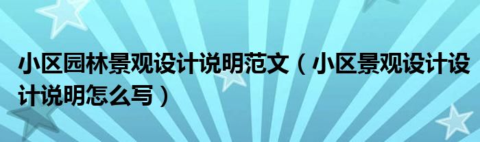 小区园林景观设计说明范文(小区景观设计设计说明怎么写)