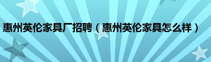 惠州英伦家具厂招聘(惠州英伦家具怎么样)