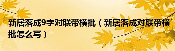新居落成9字对联带横批(新居落成对联带横批怎么写)