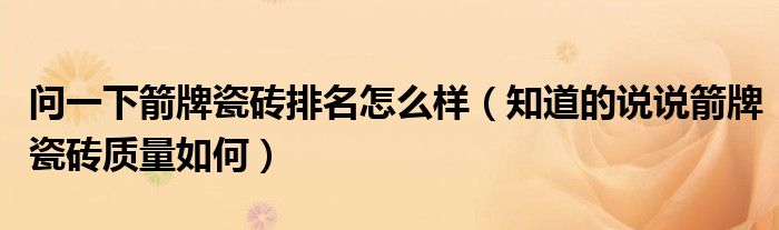 问一下箭牌瓷砖排名怎么样(知道的说说箭牌瓷砖质量如何)