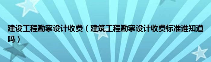 建设工程勘察设计收费(建筑工程勘察设计收费标准谁知道吗)