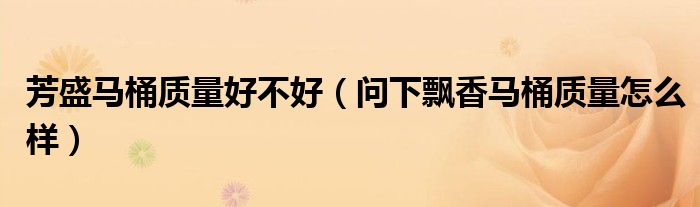 芳盛马桶质量好不好(问下飘香马桶质量怎么样)