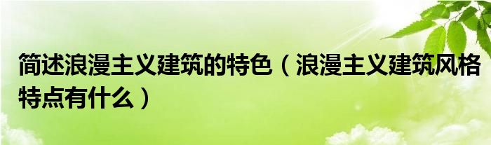 简述浪漫主义建筑的特色(浪漫主义建筑风格特点有什么)