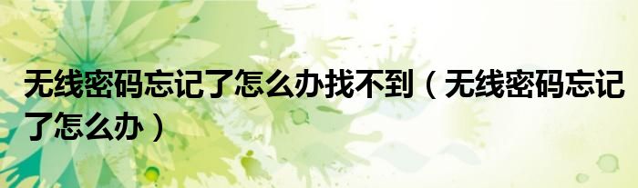 无线密码忘记了怎么办找不到(无线密码忘记了怎么办)