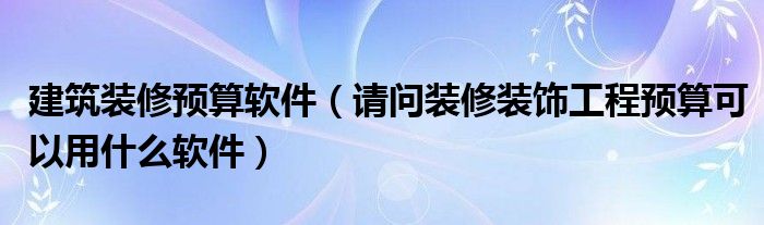 导读 大家好,小编慧慧来为大家解答以上的问题。建筑装修预算软件,请问装修装饰工程预算可以用什么软件很多人还不知道,现在让我们一起来看看吧