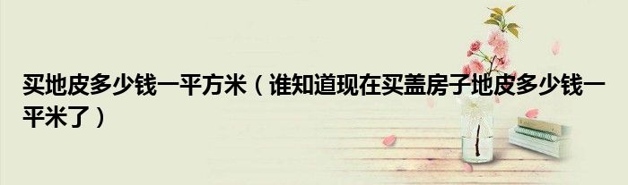 买地皮多少钱一平方米(谁知道现在买盖房子地皮多少钱一平米了)