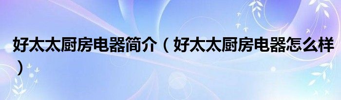 好太太厨房电器简介(好太太厨房电器怎么样)