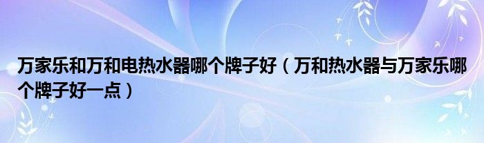 导读 大家好,精选小编来为大家解答以上的问题。万家乐和万和电热水器哪个牌子好,万和热水器与万家乐哪个牌子好一点很多人还不知道,现在让我们