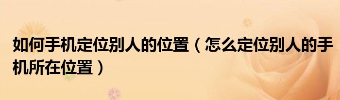 如何手机定位别人的位置(怎么定位别人的手机所在位置)
