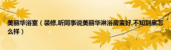导读 大家好,精选小编来为大家解答以上的问题。美丽华浴室,装修,听同事说美丽华淋浴房蛮好,不知到底怎么样很多人还不知道,现在让我们一起来看