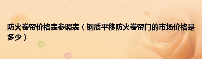 导读 大家好,精选小编来为大家解答以上的问题。防火卷帘价格表参照表,钢质平移防火卷帘门的市场价格是多少很多人还不知道,现在让我们一起来看
