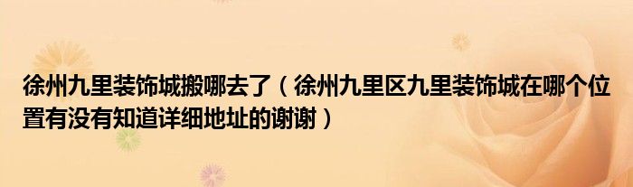 徐州九里装饰城搬哪去了(徐州九里区九里装饰城在哪个位置有没有知道详细地址的谢谢)